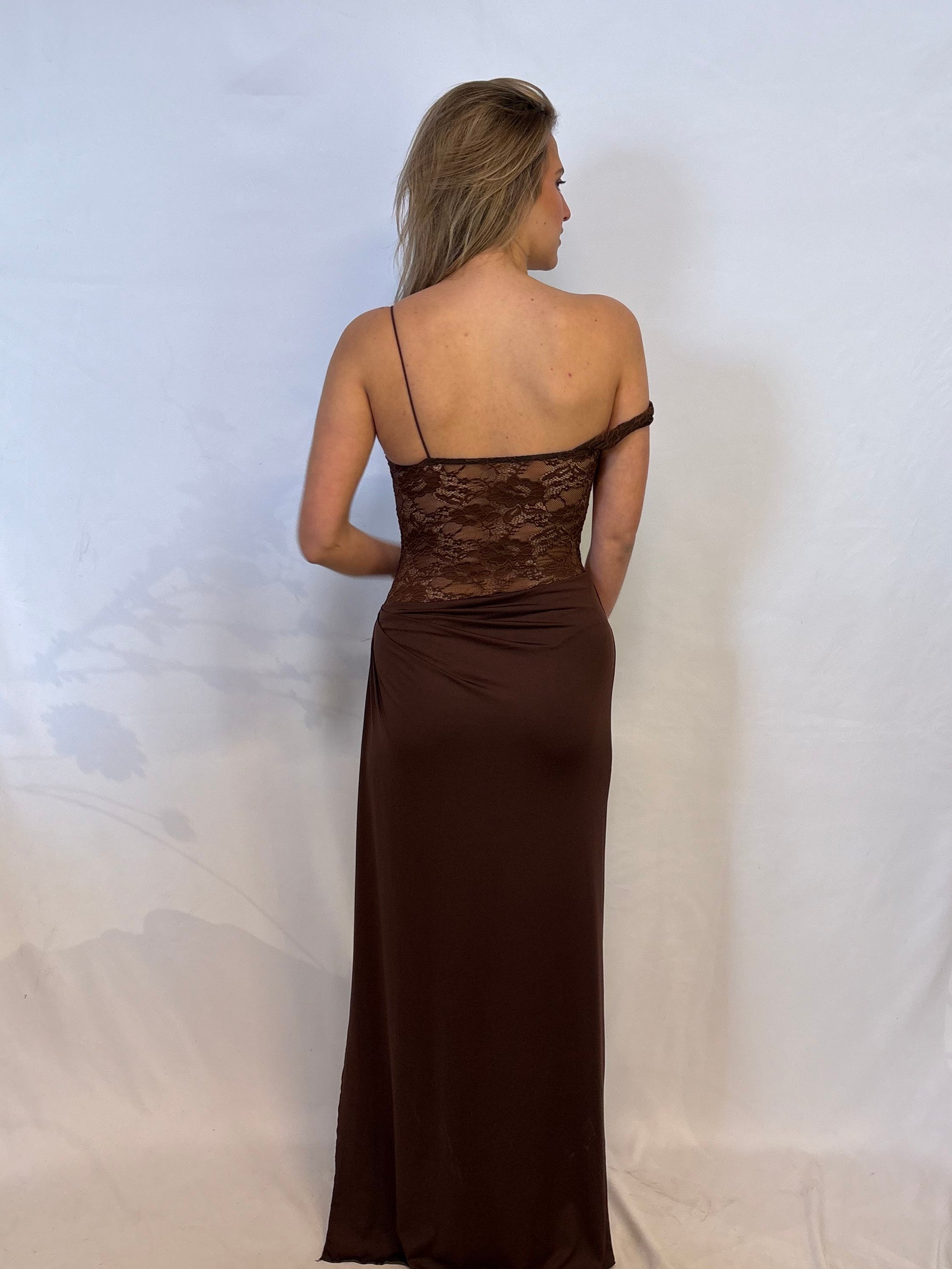 brown mesh maxi dress